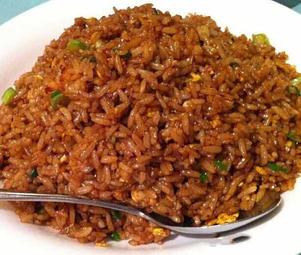 9、放入調好的醬汁,大火燒3分鐘左右。10、放入米飯炒勻。11、撒上蔥花即可出鍋。