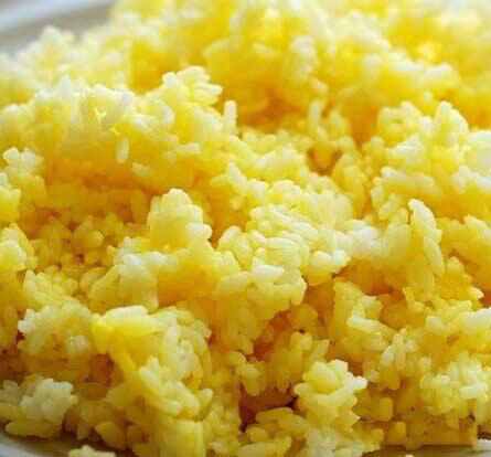2、熱鍋燒油,放入兩個鹹雞蛋黃,炒碎,放入攪拌雞蛋的米飯翻炒。最後加入鹽翻炒均勻後即可出鍋