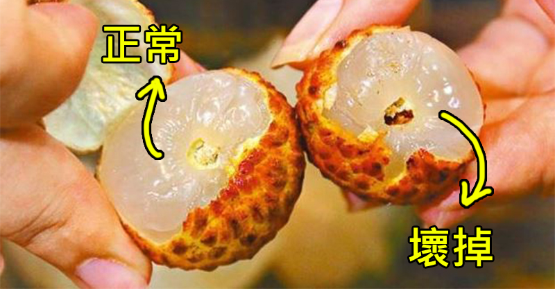 2. 荔枝 (左邊正常,右邊壞掉)。