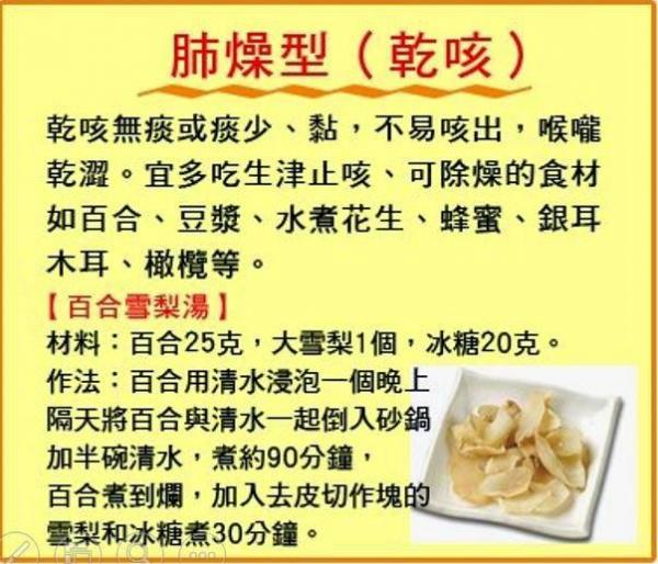如果舌苔是白的,則是風寒咳嗽,說明寒氣重,咳嗽的痰也較稀、白黏,並兼有鼻塞流涕,這時應吃一些溫熱、化痰止咳的食品。