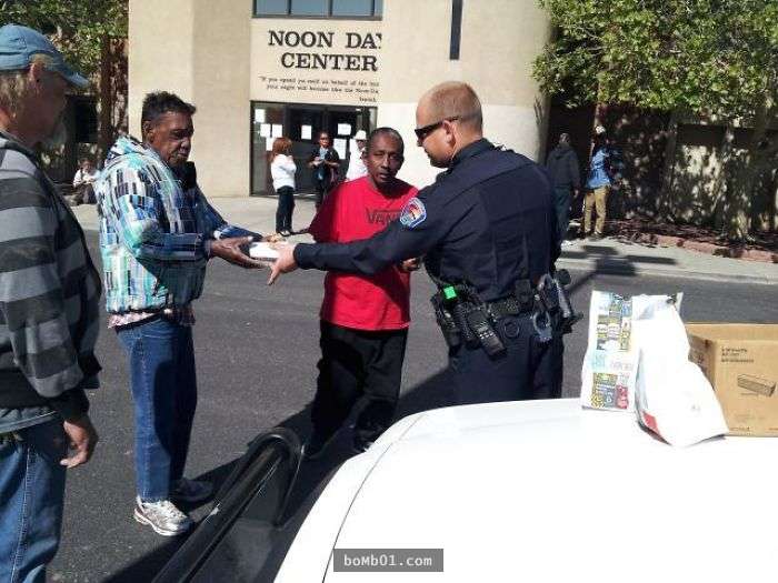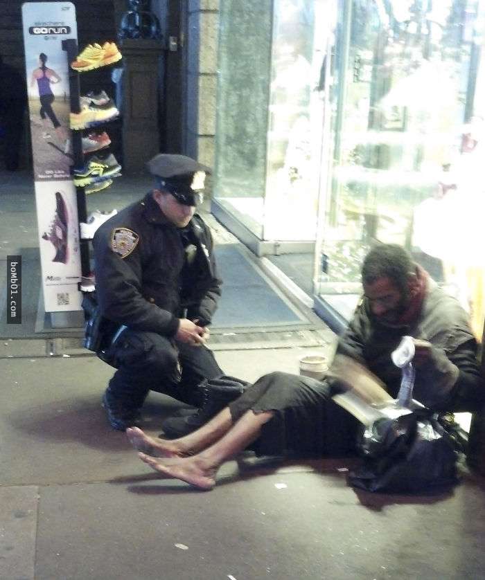 ▼12. 警察將一雙鞋給了無家可歸的人。
