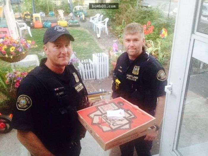 ▼17. 披薩外送員在車禍中受傷,警察替他送披薩。