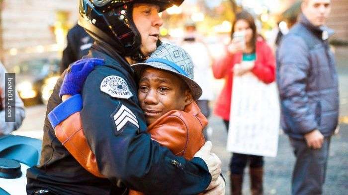 ▼20. 警察給了哭泣的男孩一個擁抱。