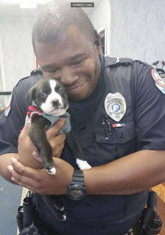 ▼4. 警察收養小狗,給了牠一個大大的擁抱。