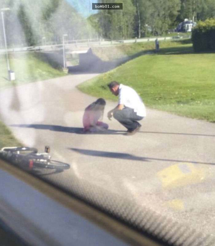 ▼9. 公車司機將滿是乘客的車停下,幫助在路上哭泣的女孩。