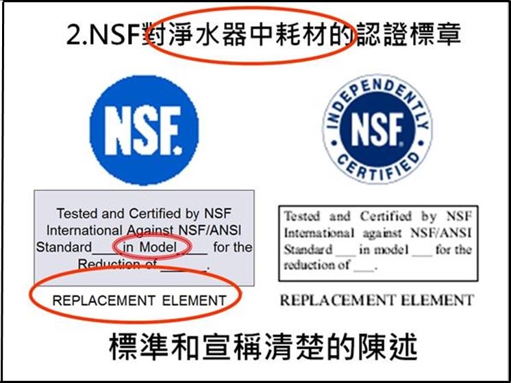 單獨組件與整組淨水器的認證是不同的,組件的認證可能是只針對淨水器耗材的認證(是放置於淨水器內被測試和認證)