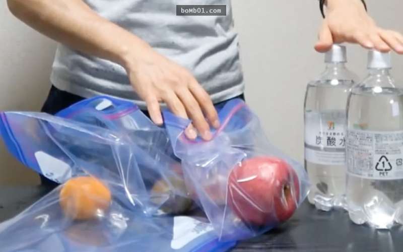 ▼準備下列物品:真空收納袋、喜歡的水果,柳橙、葡萄、櫻桃之類都可以;氣泡水,使用之前不要開封。