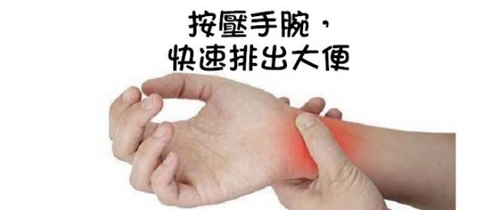 按壓時不要在室外,免得沒多久想上廁所很不方便;持續用力地按住兩穴點(兩側手腕凹槽處)約2-3分鐘(左右手都可以按壓),並努力轉動被按壓的手腕,這樣更可提高穴位的刺激,不常按壓的人,此穴位會異常疼痛,愈痛愈要按壓它,這樣便便很快就能排出(請試試看,有用請推廣)