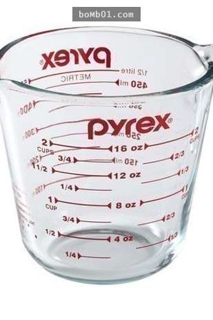 ▼4. 用燒杯測量固體。烘焙時材料的份量很重要,最好用茶匙計量,如果想要更準確的話,就買個電子秤吧。