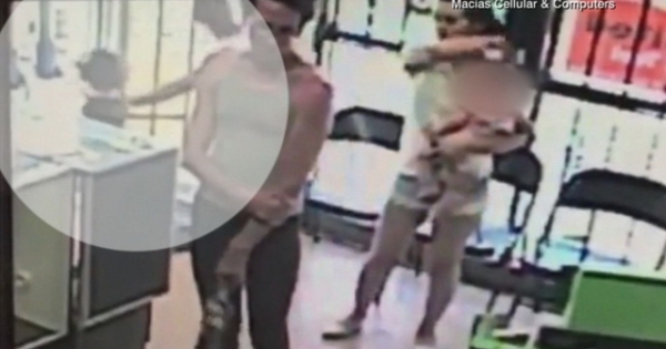 ▼根據國外媒體報導,在美國南加州維克多維爾(Victorville)的一個手機店中,一位媽媽帶著4歲小女兒進入店內,手上還抱著另一個女兒的她,並沒有注意一旁的4歲女兒正在旁邊玩耍,沒想到,一位24歲的嫌犯藍森(Terry Ransom)竟直接衝入店內,強行將小女孩抱走。
