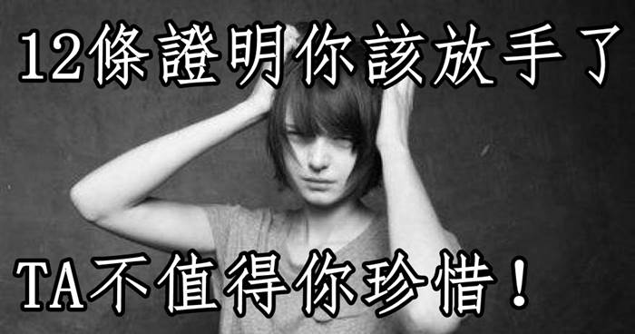 12條證明你該放手了,TA不值得你珍惜! 觀看人數:74