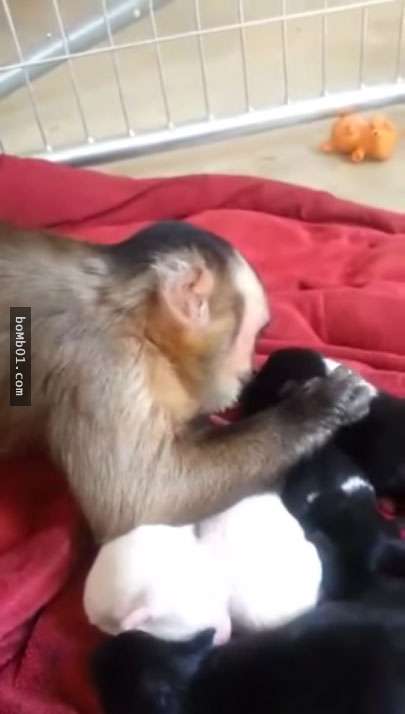 小猴子是一種非常可愛的動物,剛出生的小狗也是非常可愛的,如果牠們同時出現呢,只能說是可愛爆表了。野生的猴子都是群居動物,是會相互抓癢、餵食的,下面影片中的小猴子可能是把狗狗當成了自己的同類,不停的幫狗狗們抓癢,畫面看起來非常有愛。