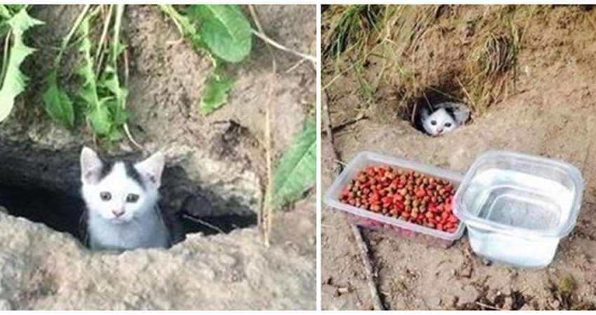 日前在韓國有民眾在郊區看到一隻小貓在路邊的坑洞裡探頭探腦的,看起來可憐兮兮。於是這位好心人士準備了一些飼料和水放在坑洞外,想讓小貓咪能有一頓飽餐。