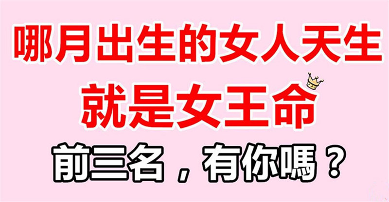 不同月份出生的女人有著截然不同的命運,有些人天生就是女王命,打從一出生下來便過著衣食無憂的生活。而有些女人則天生就是保姆命,一生忙碌。今天小編就帶大家來分享下哪些月份出生的人天生是女王命,一起來看看吧!