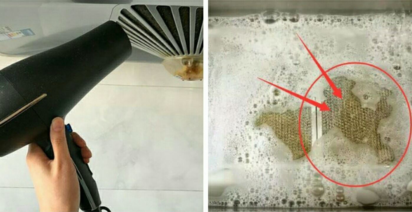 1、首先大家找出家裡的電吹風開到最大檔,然後對著油煙機的油汙吹半分鐘左右就可以啦。