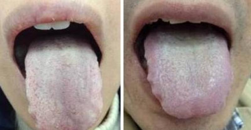 舌體:痰濕體質的人群舌頭胖大,舌頭兩邊有很明顯的齒印,舌苔白厚、厚膩,看上去很濕潤,尤其早上起來會有刮舌頭的衝動。