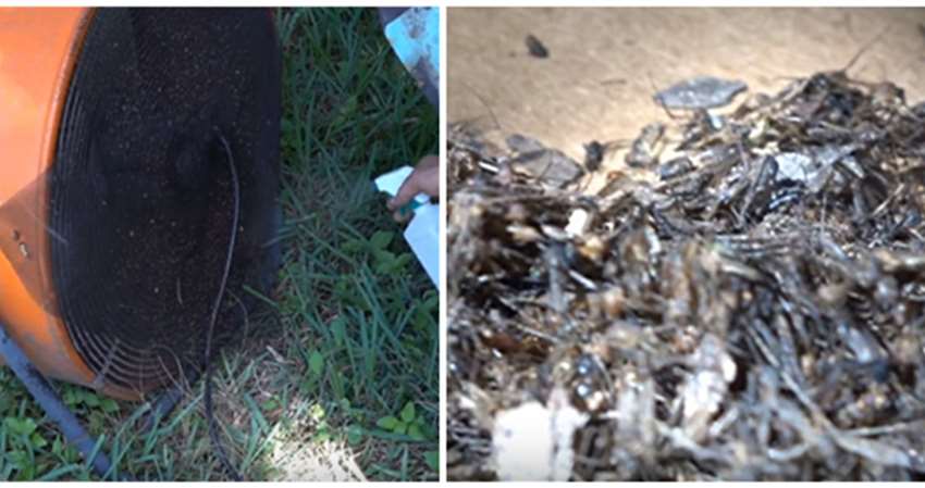 簡簡單單一台捕蚊機就完成啦!讓風扇轉動一晚,第二天醒來可以發現紗布上都是蚊子,這些蚊子沒有死掉,丹噴上酒精殺死了牠們。而靠著這樣的方法,丹在短短兩天內就抓了8千多隻蚊子,可說是大豐收。