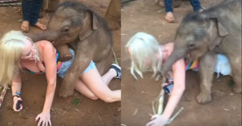 小象,你要不要這麼會撒嬌~真的敗給你了,要是你長大了還帶著這個愛好,遊客們該怎麼辦呢?
