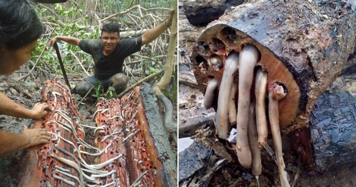 ▼船蛆(Shipworm)學名為船蛆蛤,屬於軟體動物門雙殼綱,因此牠們其實就是蛤蠣的近親;牠們喜歡生活在熱帶沼澤地帶的腐木裡,在泰國是一種頗受歡迎的美食,且價格不斐,每公斤要價800到1000泰銖,相當於台幣700到900多。