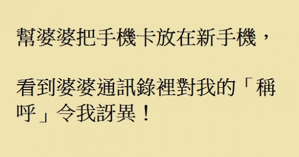 | 幫婆婆把手機卡放在新手機,看到婆婆通訊錄裡對我的稱呼令我訝異!! |