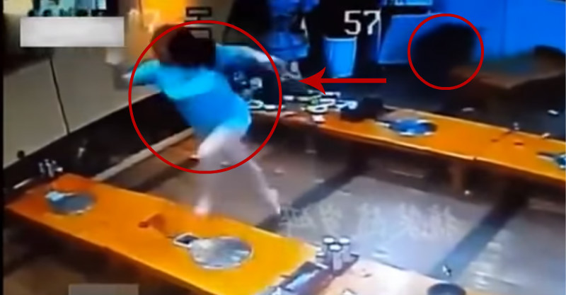 短褲女子正吃飯時發現不對勁,監控拍下女子拔腿就跑的畫面......