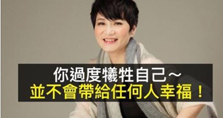 我鼓勵女性不要過度犧牲自己,要建立起自己的價值。一個女人,首先是作為一個獨立的人存在,然後才有其他屬性,作為妻子,或者作為母親的角色。如果你把自我的價值建立在男人和孩子,你自己既不幸福,也會使得男人、孩子因為要對你負責而生命不能承受之重。