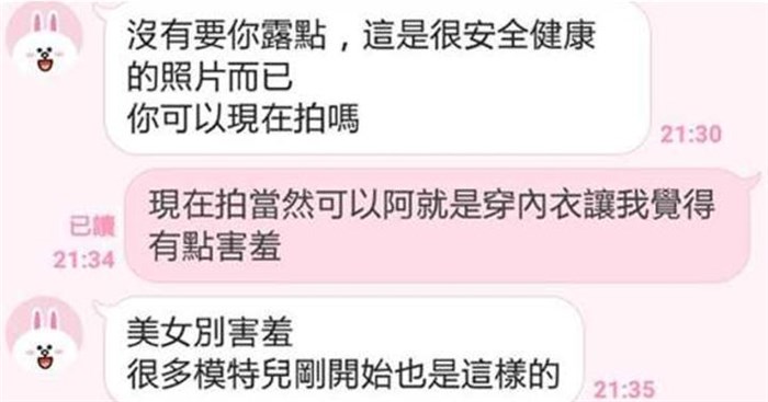 | 女友的LINE上有人冒充星探討她的性感照,於是他發了「一張超性感照」讓對方嚇得不要不要的 |