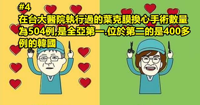 8. 臺大醫院執行過的葉克膜換心手數量為504例,高於亞洲其他團隊,排名第二的韓國團隊案例為400多例。