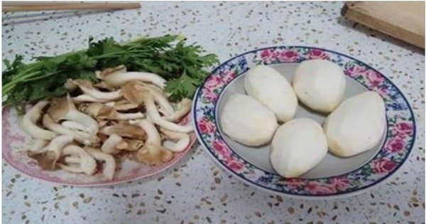 蘑菇清洗乾淨掰成小塊,老媽還準備了一些香菜用來調味!