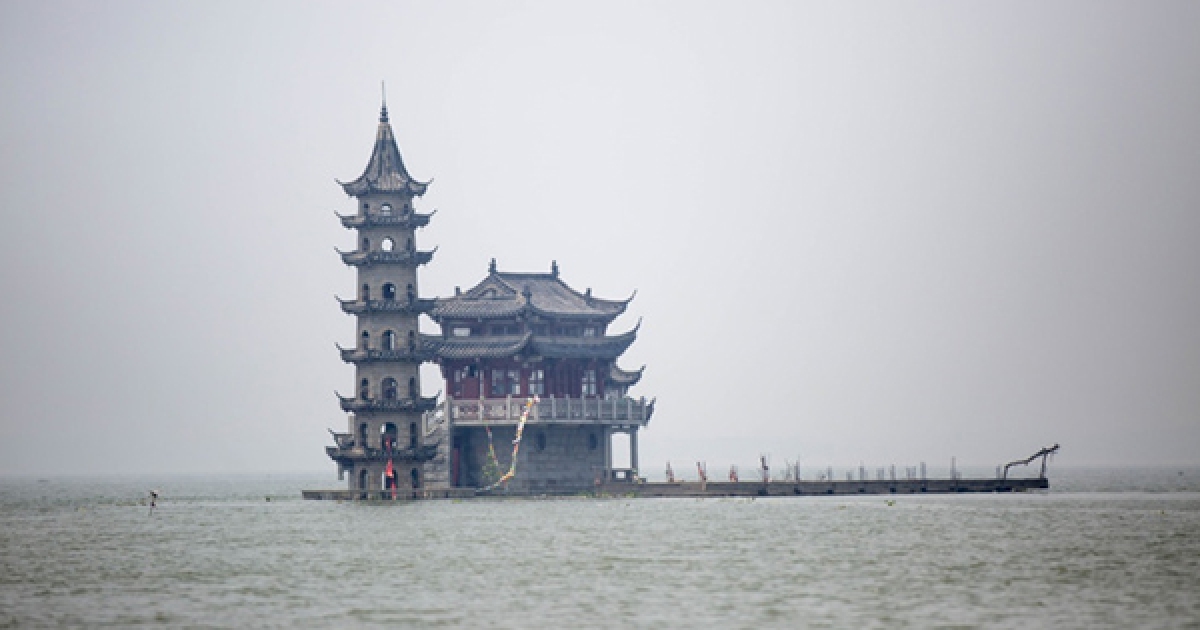 江西鄱陽湖中有一個叫做「落星墩」的小石島,它不過1800平方公尺,卻是當地很有名的地標。每年鄱陽湖汛期,落星墩就會被水淹沒,到了枯水期才顯露出來。平時大家過去看的話,只能看到「漂浮」在水麵上的建築。