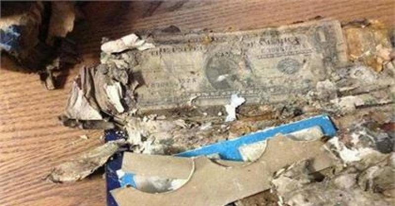 男子打開櫃子後,發現裡麵竟然藏著許多東西。他從裡麵找到了一些已經腐爛的美元,然後慢慢地將所有東西拿了出來。
