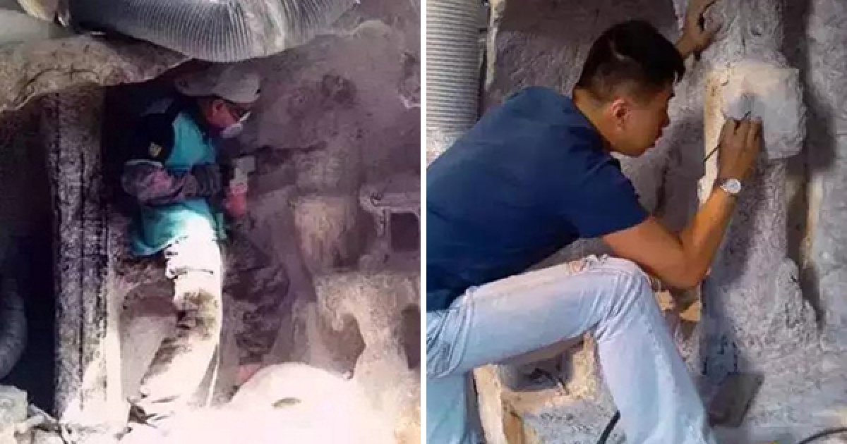 ▼把主體掏空了以後,開始一點點的精雕細啄,因為石材的實際情況和設計的時候有出入,所以他們就一邊雕刻一邊修改。