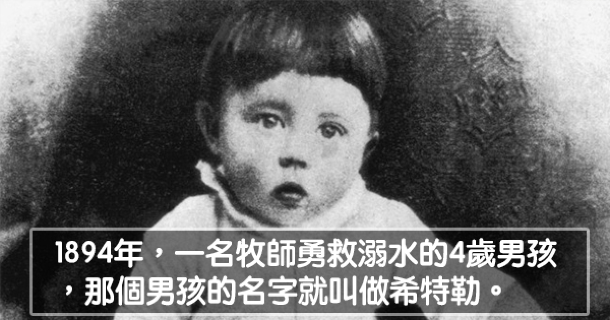 ▼1894年,一名牧師英勇救出了一名溺水的4歲男孩,那個男孩就是希特勒。