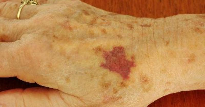 淋巴瘤、骨髓瘤、白血病等會直接影響到血小板的數量和功能,當血小板的數量少到一定的程度就容易在皮膚表麵形成大麵積的紫色的斑點,也就是紫斑。
