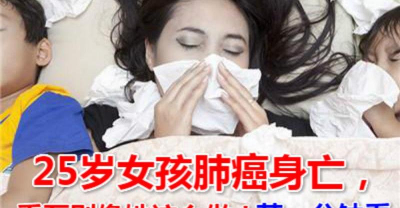 有一些嚴重的疾病,常常會奪取一些朋友的生命,這是令人非常惋惜的事情,尤其是癌症,這種疾病非常嚴重,這是一個悲傷的事件:年方25歲的陳小姐患肺癌,卻因太年輕被誤當肺炎醫,最終不治身亡。而她最開始的症狀,是很容易被當普通感冒的咳嗽、胸悶…… 25歲女孩肺癌身亡,千萬別像她這麼做!!花一分鐘看,或許能讓你的世界變得不一樣!!