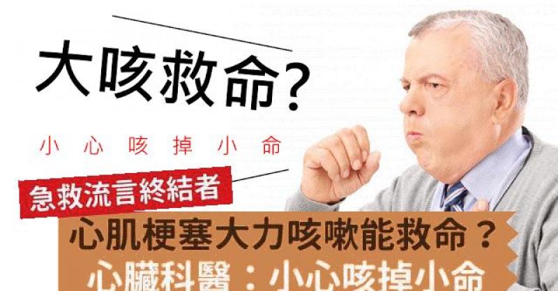 前一陣子網路上流行一個心肌梗塞的「自救法」,聲稱假如你突然感到胸痛不適,懷疑自己得了心肌梗塞,這時候要不停地大力咳嗽,越賣力越好,這樣子可以擠壓快要停止的心臟打出血液,你就可以獲救了。