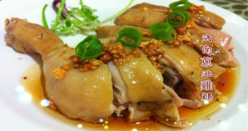 3。打開飯鍋,取出雞腿剁塊,然後灑上蒜油,蔥絲再淋上淡醬油即可上座。