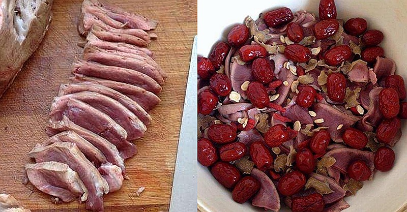 3,把豬心下入砂鍋內,放入枸杞,黃芪,良薑,大棗!