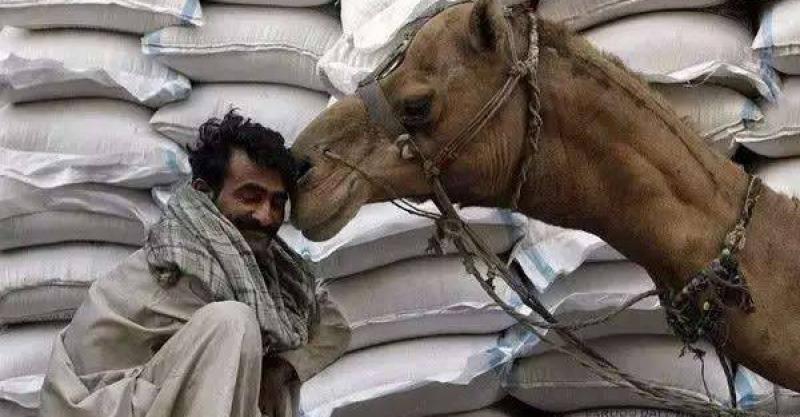 巴基斯坦,一頭駱駝親吻給自己餵食的主人。