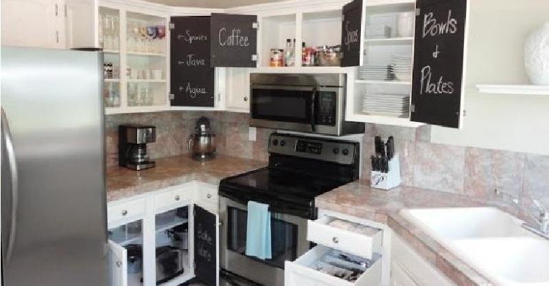 櫃門的內側麵板閑著也是閑著,塗上黑板漆,不管是做標籤還是隨手記錄(菜譜、靈感),塗鴉都非常有意思。