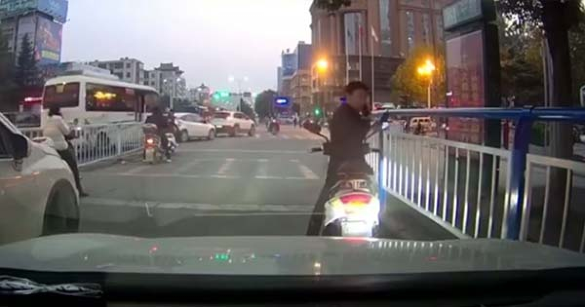 這幾天,大陸的一段行車紀錄器影片引起了很多人的關注。影片中,一名年輕的機車騎士不顧綠燈,從口袋裡拿出手機講電話。後麵的車子被擋住,車主按喇叭提醒,希望他移動一下,沒想到那名騎士竟然回過頭來破口大罵:「X你媽的X!」