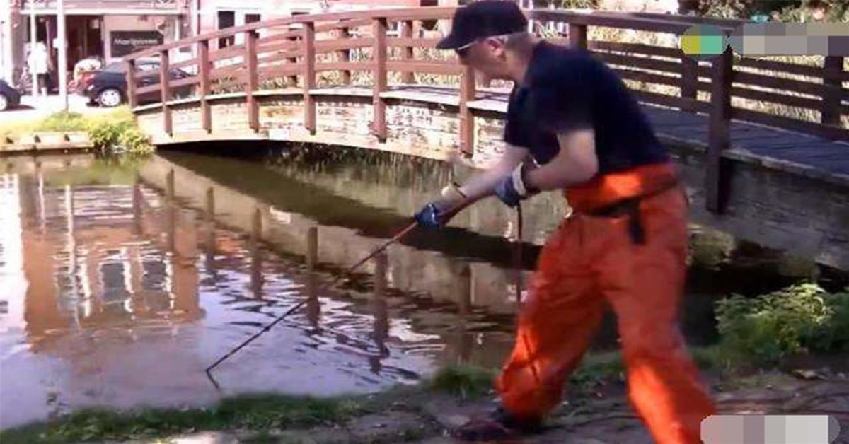 男子無意在水池裡隨意扔了一塊磁鐵,居然能發現值錢之物,不得不說男子的命運真是太好了,不知道你們有沒有磁鐵在水裡吸到過甚麼好東西。