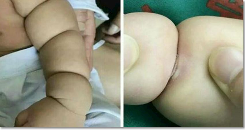 寶寶三個月後,胖嘟嘟的,手臂一節一節的,像米其林娃娃,小劉和老公看著寶寶挺可愛的,也沒發現有異樣。