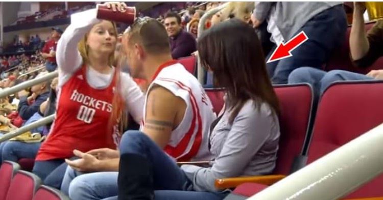 被親親鏡頭拍到女友不給親還將飲料倒在男生頭上,接著旁邊的正妹做的事情讓全場為之暴動了!