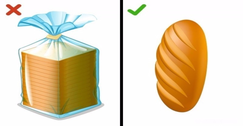 5.麵包  新鮮麵包通常不會太硬,買麵包時可以輕戳觀察。如果有得選,建議大家別買原本就裝在塑膠袋裡的麵包,因為會用塑膠袋包裝是為了讓麵包「在長時間下不變硬」,但這樣的麵包幾個小時後就會失去原本的風味。