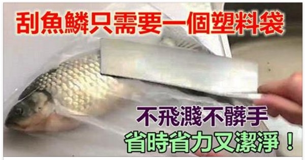 刮魚鱗只需一個塑料袋,刮魚鱗不飛濺不髒手,而且省時省力又潔凈。
