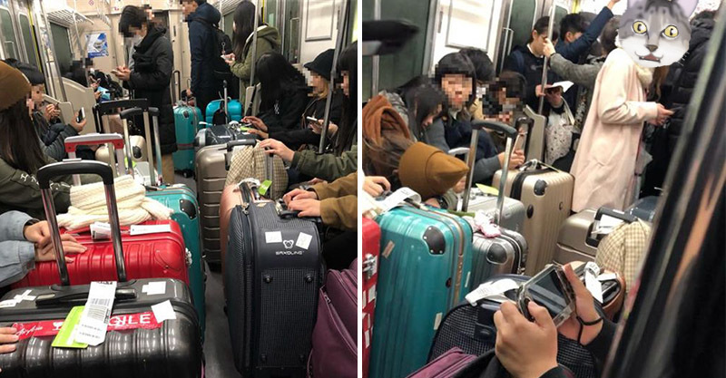日前一名網友在臉書專業「日本打工度假就職專家」貼出了2張照片,照片裡是一群台灣人在日本電車上,只見走道上推滿了大大小小的行李箱,完全沒有任何空間讓人站...