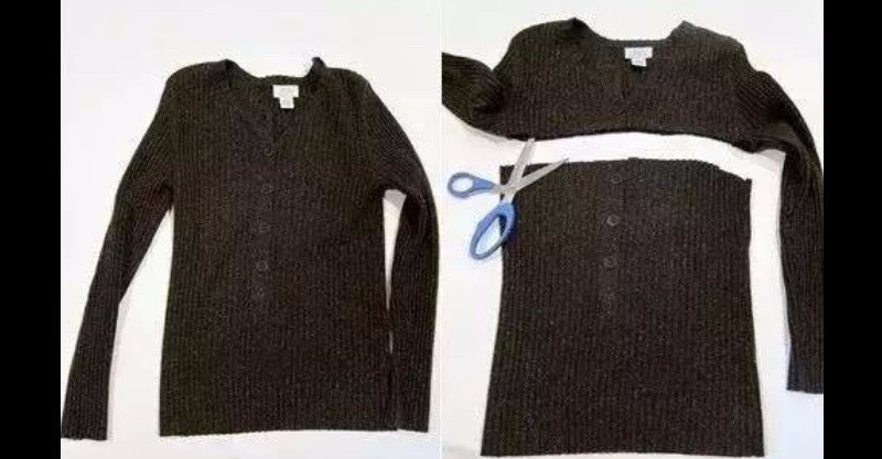 將舊毛衣袖子以上剪掉縫好,剩餘部分當做圍脖時尚大方~