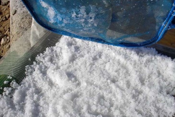 首先先把海鹽放進小碗裏麵加入水攪拌。