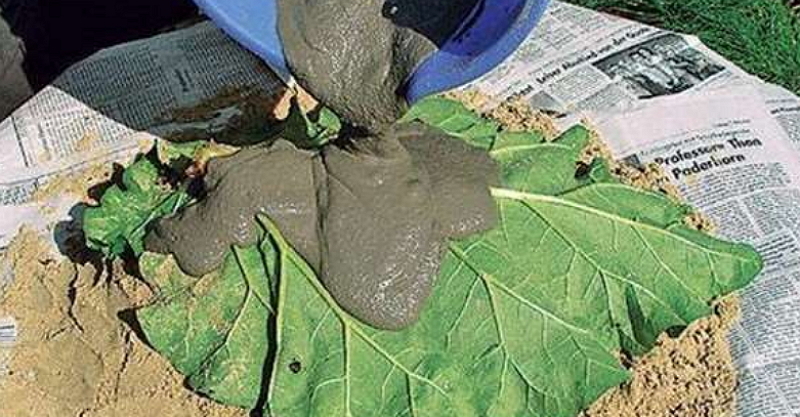首先找一片大荷葉或樹葉,塗滿泥沙,再覆蓋一層水泥!等凝固後拆掉葉子,漂亮的水泥荷葉模型就成形了。